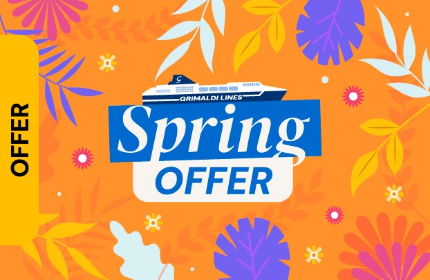 Spring Offer Grimaldi Lines Approfitta dello sconto del 15% – esclusi diritti fissi, costi EU ETS e servizi di bordo- su collegamenti marittimi selezi...