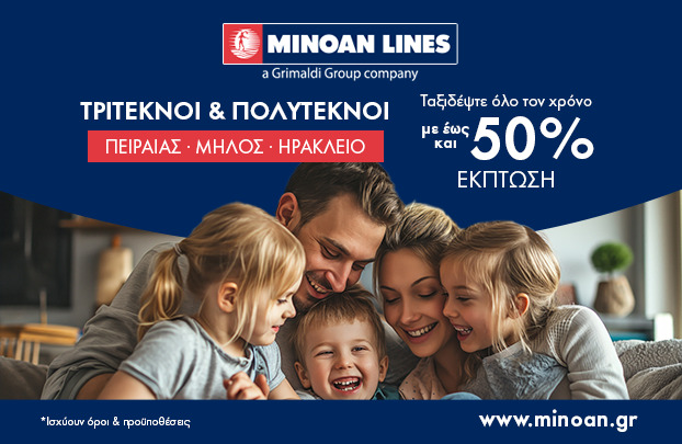 Κλείστε σήμερα τα εισιτήριά σας από και προς Πειραιά ή Ηράκλειο και γεμίστε την οικογένειά σας φωτεινά χαμόγελα! Εμείς φροντίσαμε να απολαύσετε το ταξίδι σας στη μισή τιμή.