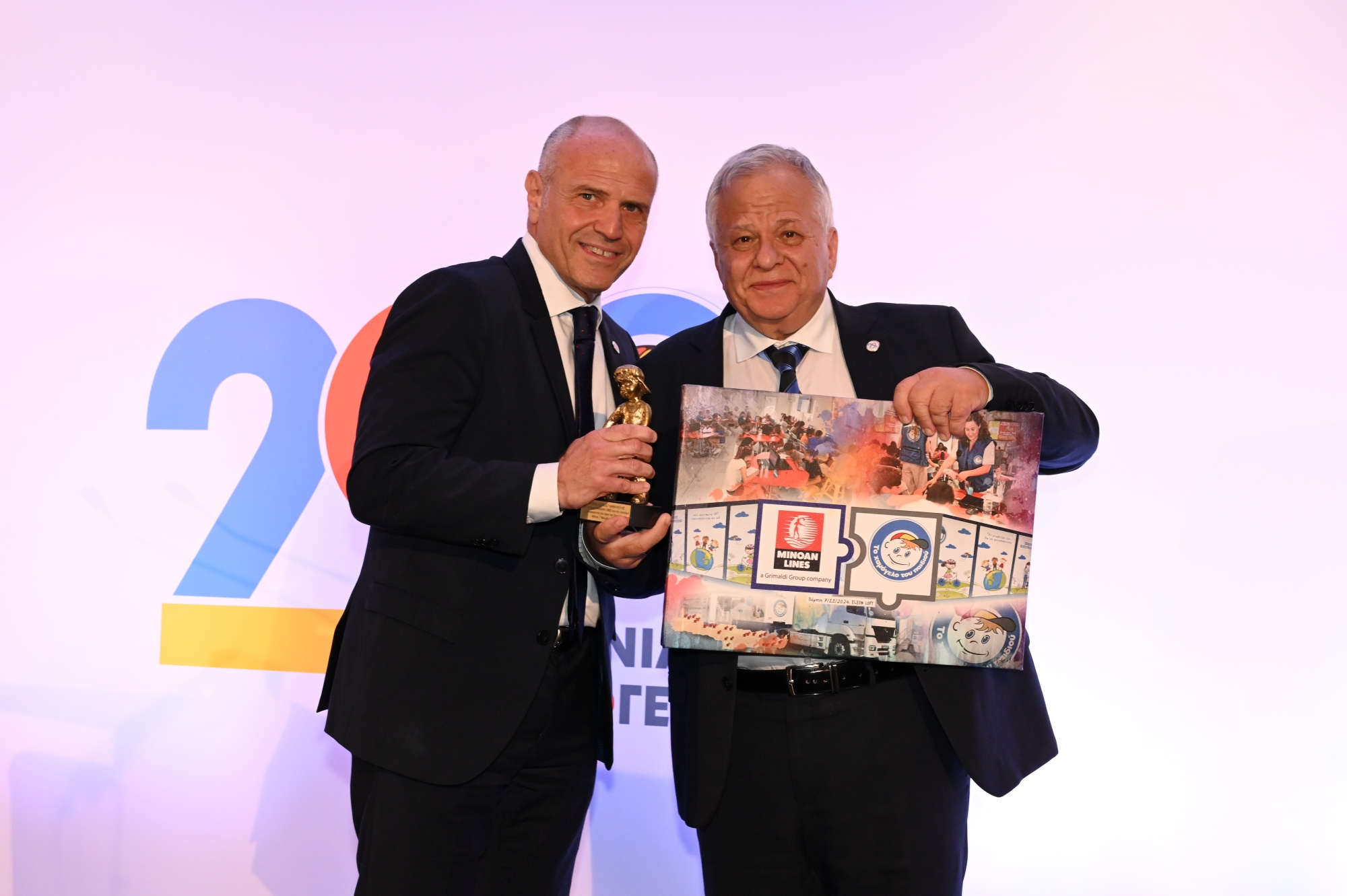 Μία γιορτή προσφοράς και σύμπραξης με γνώμονα την ανιδιοτέλεια, την αφοσίωση, την αγάπη. Στο πλαίσιο της επετειακής εκδήλωσης για τα 29 χρόνια δράσης και προσφοράς του Οργανισμού «Το Χαμόγελο του Παιδιού» στην ελληνική κοινωνία, η MINOAN LINES βραβεύτηκε για τη διαχρονική στήριξή της προς το αξιέπαινο έργο του. Η MINOAN LINES, μέλος του Ομίλου Grimaldi και ένα από τα ισχυρότερα brand names στον χώρο της ελληνικής επιβατηγού ναυτιλίας, αποτελεί σταθερό συνοδοιπόρο στη πορεία του «Χαμόγελου» ως αποκλειστικός μεταφορέας από και προς την Κρήτη.