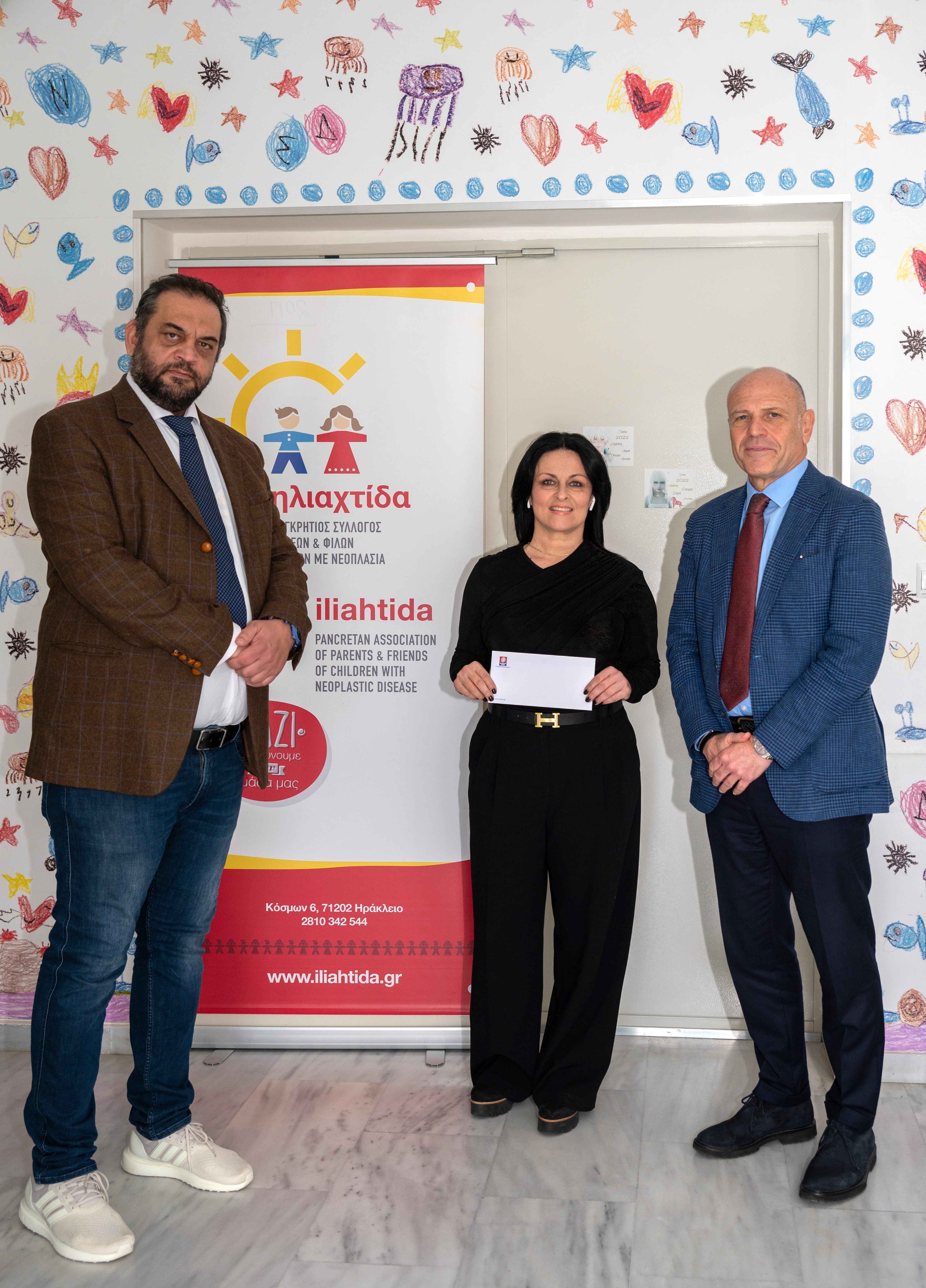 Ταξιδέψαμε για την αλληλεγγύη και την αγάπη, ενισχύοντας τη δράση του Παγκρήτιου Συλλόγου Γονέων και Φίλων Παιδιών με Νεοπλασία «Η Ηλιαχτίδα». Σε συνέχεια της υλοποίησης της καμπάνιας Κοινωνικής Ευθύνης «Ταξιδεύουμε για καλό σκοπό», με κεντρικό άξονα της δράσης «1 εισιτήριο à 1 ευρώ à 1 πράξη αγάπης», η MINOAN LINES προσέφερε €1 από κάθε εισιτήριο στα δρομολόγια που πραγματοποιήθηκαν στις 24 και 30 Δεκεμβρίου στη γραμμή ΠΕΙΡΑΙΑΣ – ΜΗΛΟΣ – ΗΡΑΚΛΕΙΟ και αντίστροφα. Η απόδοση της δωρεάς ύψους €5,000 πραγματοποιήθηκε στο πλαίσιο συνάντησης του κ. Λουκά Σιγάλα, Διευθύνοντος Συμβούλου της MINOAN LINES, με την κα Μαρία Ευστρατίου, Πρόεδρο ΔΣ της «Ηλιαχτίδας», στον Ξενώνα Φιλοξενίας «η Hλιαχτίδα», που βρίσκεται στο Πανεπιστημιακό Γενικό Νοσοκομείο Ηρακλείου (Πα.Γ.Ν.Η.), παρουσία του Αναπληρωτή Διοικητή του Πα.Γ.Ν.Η. κου Στέλιου Κτενιαδάκη.