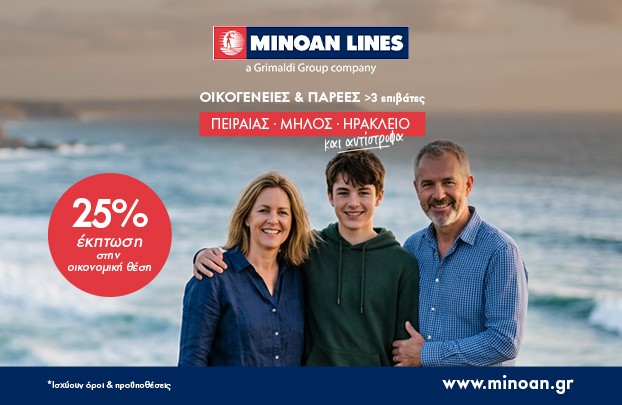Η προσφορά 25% για οικογένειες και παρέες στη γραμμή Πειραιάς-Μήλος-Ηράκλειο ή Ηράκλειο-Μήλος-Πειραιάς ισχύει για ταξίδια από 10/02/2026 έως και 31/03/2026.