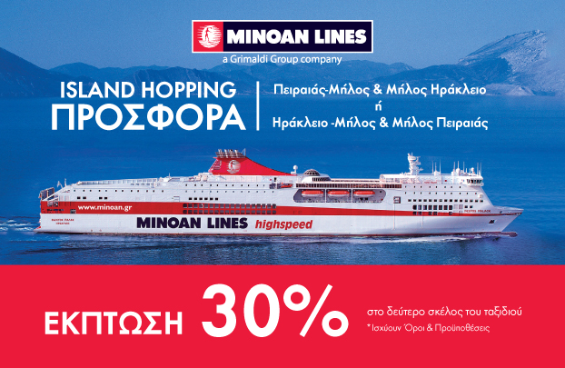 Προσφορά ISLAND HOPPING στη γραμμή Πειραιάς-Μήλος-Ηράκλειο ή Ηράκλειο-Μήλος-Πειραιάς.